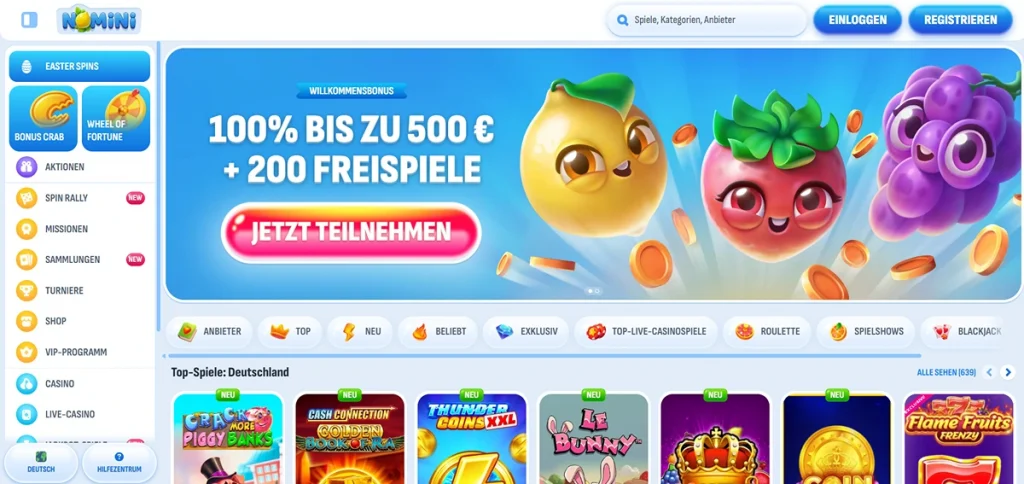 Review: Nomini – Farbenfrohes Casino-Erlebnis mit größter Bonus-Auswahl